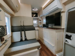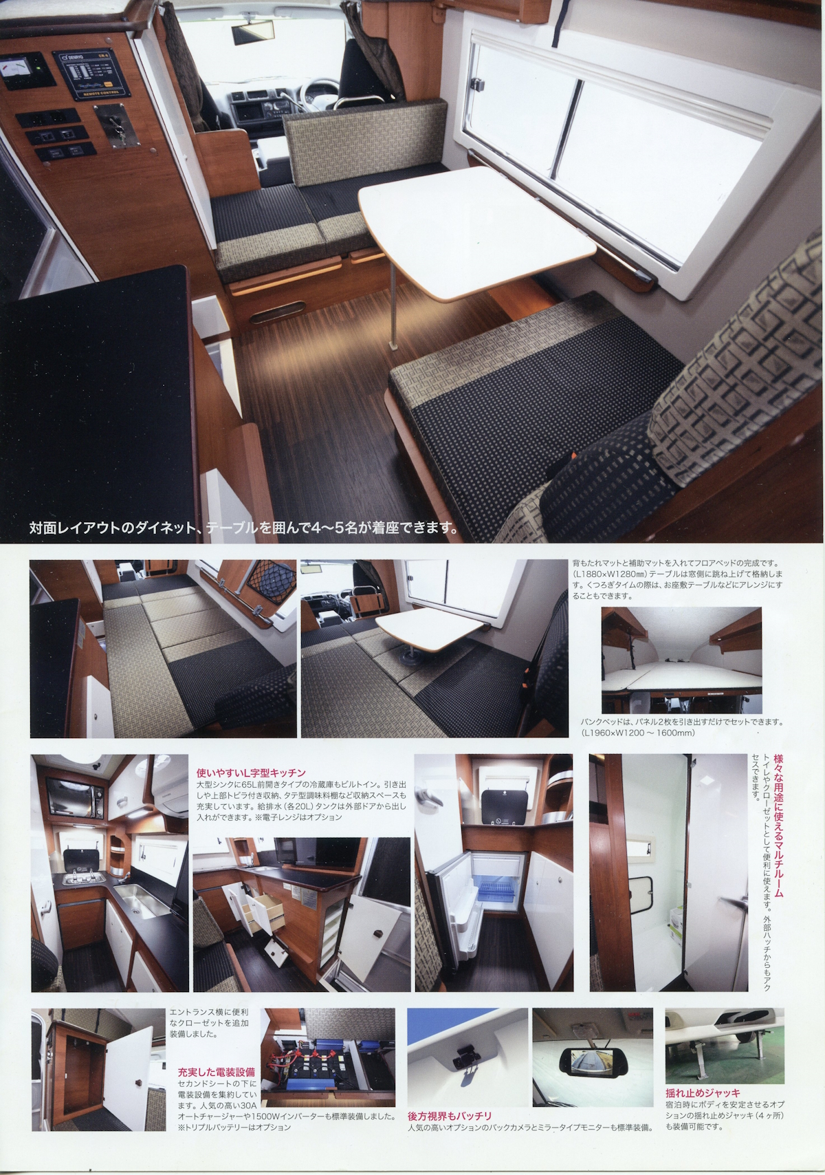 常設2段ベッド、マルチルーム、大きなトランクルーム、等々理想的な車だと思いましたが、車幅が2.1mもあることと価格面で除外となりました。