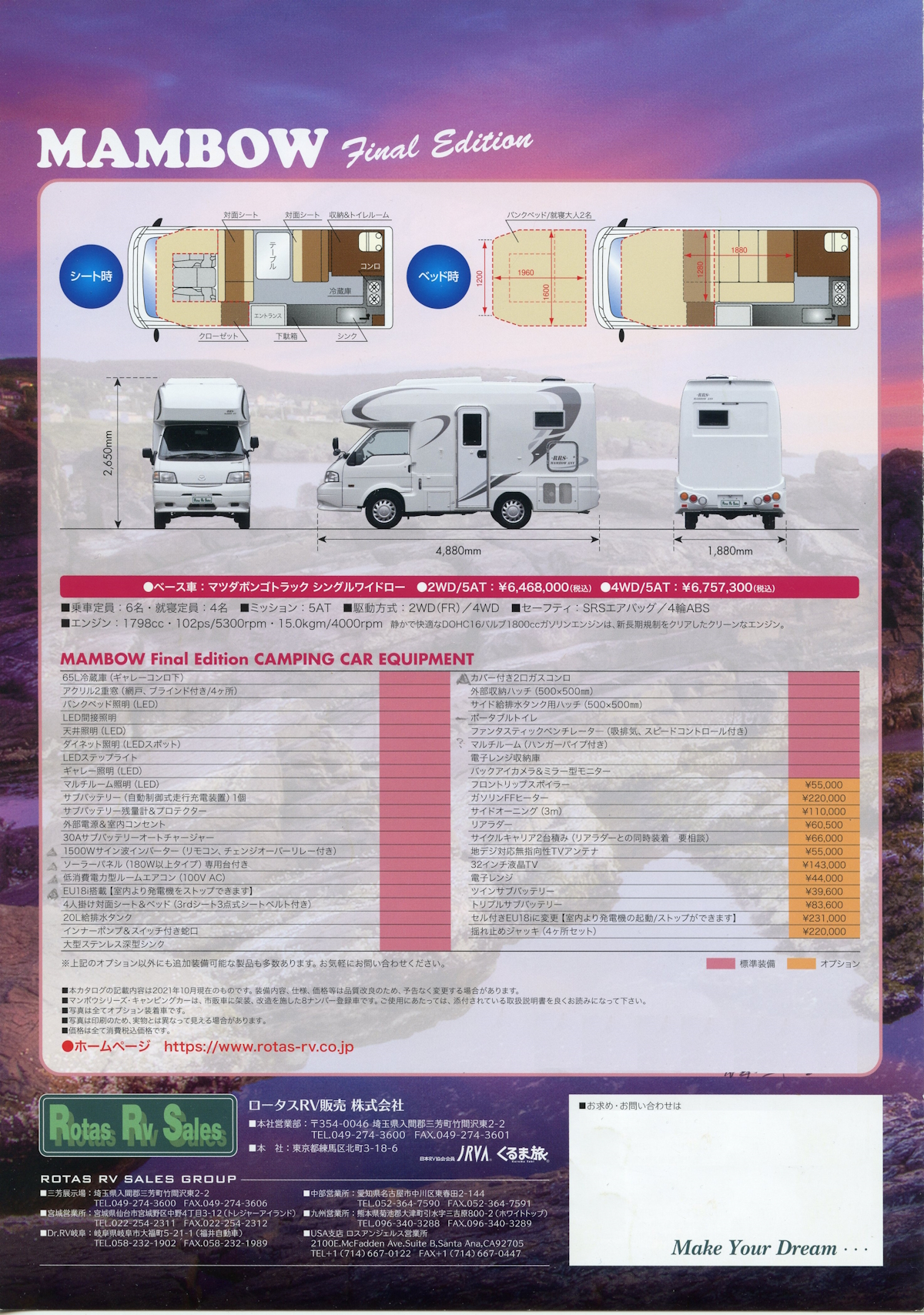 以前、幕張メッセでMAMBOW EXEは見ていていました。その時は、キャンピングカーを調べ始めた頃だったので、気になりはしたものの他にもっと良い車があるだろうと思っていたこと、前記の車などに興味がそそられていく中で、その存在をも忘れていました。