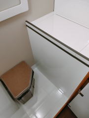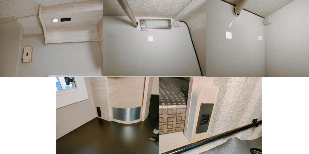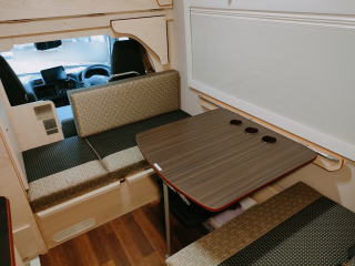 常設ベッドがありながらも普段使いもできそうなところが気に入りました。難点は、車内で立てないことです。救急車などに用いられているスーパーハイルーフだったら立てると思うのですが、ベース車両には無いようで、この一点を許容することができなくて選択肢から外れました。