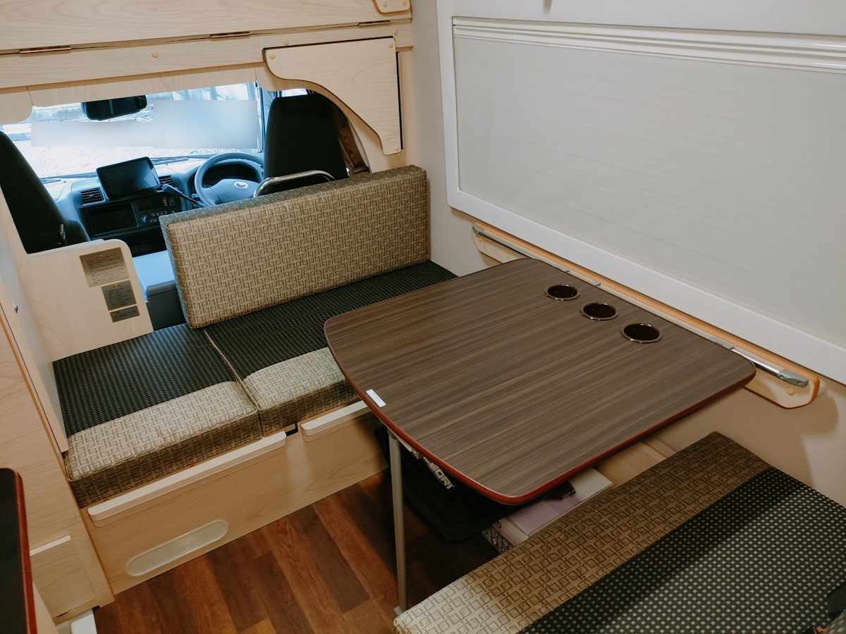 車幅、車長がアルファードとほとんど差が無い程コンパクトなサイズなのにマルチルームも十分な広さが確保されていますし車内で立つこともできます。常設ベッドが無いのは少し残念ですが、このサイズならば仕方ありません。ダイネットをベッド展開すれば就寝できますし、バンクベッドでも就寝することが可能なので許容範囲です。